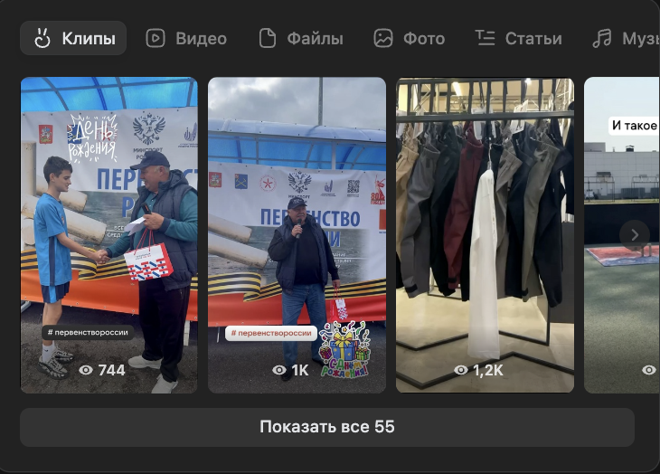 Федерация не ограничивается постами и трансляциями. В их сообществе регулярно выходят ВК-клипы, которые стабильно набирают от 1 до 2 тысяч просмотров. Короткие видео позволяют показать эмоции и атмосферу соревнований в лёгком формате.